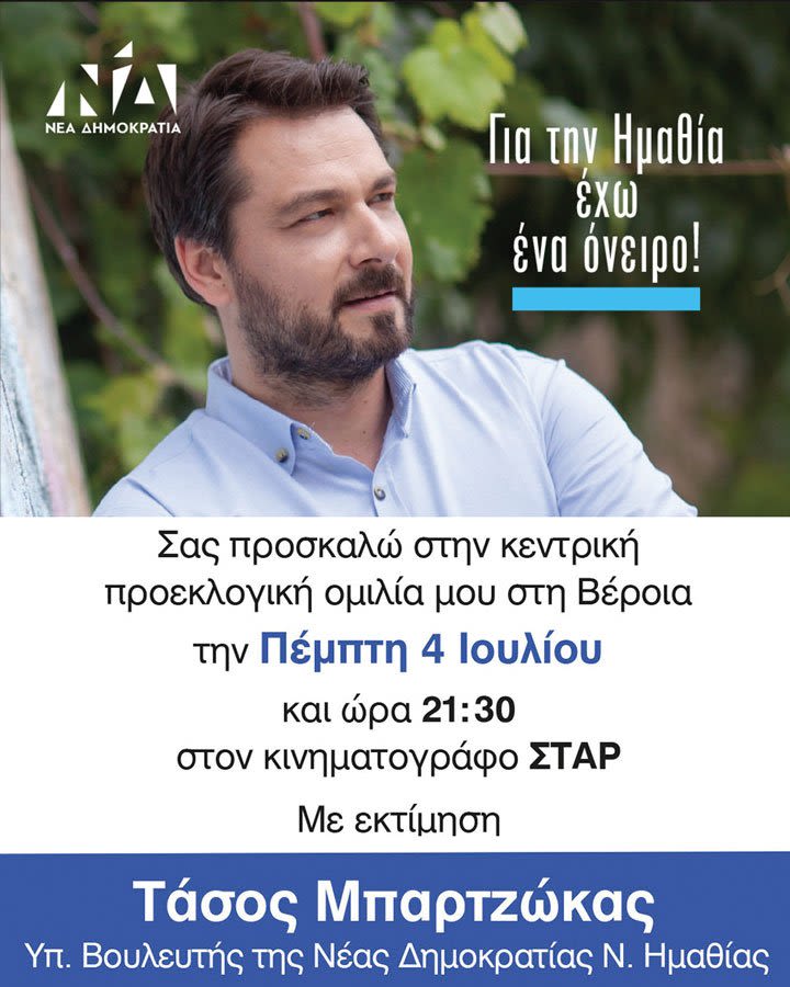 κεντρική του προεκλογική ομιλία πραγματοποιεί ο υποψήφιος βουλευτής Ημαθίας της