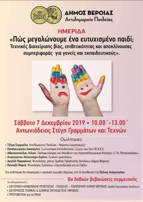 Η Ημερίδα Θα πραγματοποιηθεί στην Αντωνιάδειο Στέγη Γραμμάτων και Τεχνών στη Βέροια, το Σάββατο 7 Δεκεμβρίου 2019 και ώρα 10.00΄-13.00΄.