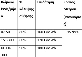 • για την μηνιαία κατανάλωση από 151-300KWh επιδοτούμε το 60% της αύξησης με 120 €/MWh