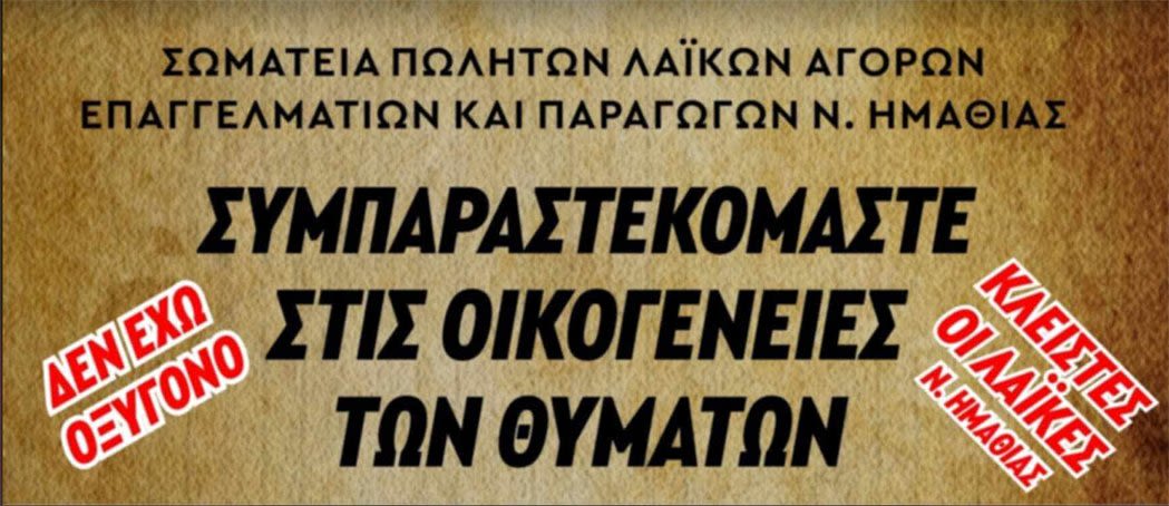 Σωματεία Πωλητών Λαϊκών Αγορών, Επαγγελματιών και Παραγωγών Ημαθίας Κλειστές την Παρασκευή οι λαϊκές αγορές της Ημαθίας – Τρισάγιο στη μνήμη των 57 θυμάτων και συγκέντρωση τροφίμων