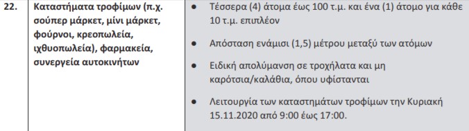 Συγκεκριμένα, όπως προβλέπει η ΚΥΑ με τα νέα μέτρα για το δεύτερο λοκντάουν, που δημοσιεύθηκε χθες σε ΦΕΚ: