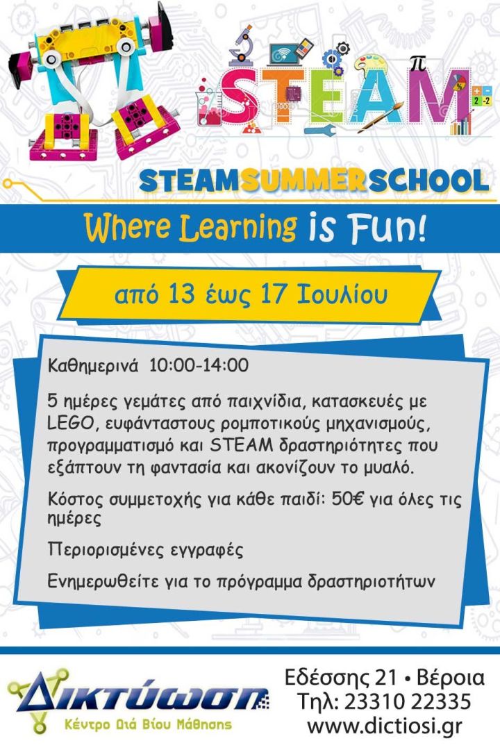 STEAM SUMMER SCHOOL θα πραγματοποιηθεί