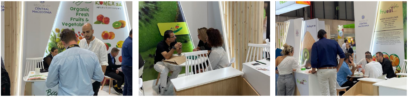 Φέτος όπως και τις προηγούμενες χρονιές η Περιφέρεια Κεντρικής Μακεδονίας εξασφάλισε έναν προνομιακό χώρο στο περίπτερο 10, όπου και φιλοξένησε οκτώ δυναμικές εταιρείες φρούτων σε ένα περίπτερο σύγχρονου design και αισθητικής. Το περίπτερο της Περιφέρειας είχε μεγάλη επισκεψιμότητα και πλήθος επιχειρηματιών και εμπορικών επισκεπτών είχαν την ευκαιρία να γνωρίσουν από κοντά τα εξαιρετικά προϊόντα του τόπου μας, να πραγματοποιήσουν B2B συναντήσεις και να συνάψουν εμπορικές συμφωνίες. Οι εκθέτες είχαν την ευκαιρία να κάνουν καινούριες επαφές, να ανανεώσουν ήδη υπάρχουσες συνεργασίες, να ενημερωθούν σχετικά με τις εξελίξεις στο χώρο των φρούτων, να δουν από κοντά νέες συσκευασίες, να ενημερωθούν σχετικά με καινοτόμες πρακτικές και να πετύχουν το καλύτερο δυνατό εμπορικό αποτέλεσμα για την εταιρεία τους.