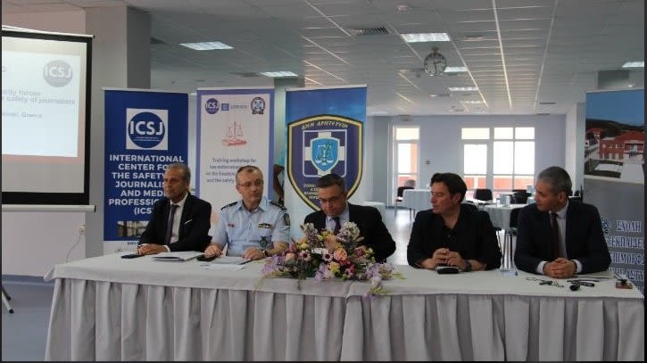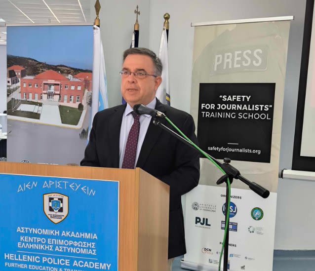 Την πρωτοβουλία του Διεθνούς Κέντρου για την Ασφάλεια των Δημοσιογράφων και Επαγγελματιών των ΜΜΕ (ICSJ) εξήρε ο υφυπουργός παρά τω Πρωθυπουργώ και κυβερνητικός εκπρόσωπος Παύλος Μαρινάκης, σε χαιρετισμό του, που μετέφερε στους συμμετέχοντες στην εκπαίδευση, ο Γενικός Γραμματέας Επικοινωνίας και Ενημέρωσης Δημήτρης Γαλαμάτης, ο οποίος επισκέφθηκε χθες τη Σχολή στη Βέροια.