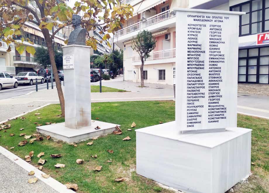Πριν λίγες ημέρες στην αρχή της οδού Καρακωστή, στη νησίδα όπου βρίσκεται η προτομή του Καπετάν Στέργιου Κουκουτέγου, τοποθετήθηκε ένα μαρμάρινο μνημείο, όπου αναγράφονται τα ονόματα των οπλαρχηγών και οπλιτών του Μακεδονικού Αγώνα, που είναι από την περιοχή μας.