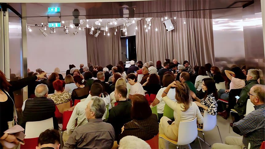 της Νέας Αριστεράς Στέλιο Κούλογλου στην κατάμεστη αίθουσα προβολών της