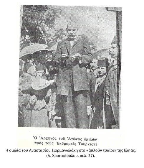 Ἡ συνάντησις 4 Μητροπολιτῶν δὲν ἦτο συμπτωματική. Οἱ Ἀρχιερεῖς οἱ ὁποῖοι ἦσαν οἱ Ἐθνάρχαι μας … ἦλθον ἐδῶ νὰ συζητήσουν καὶ νὰ ἀποφασίσουν μὲ τὸν ἀντιπρόσωπον τῆς Ἑλλάδος … Ἦλθον νὰ ἐμψυχώσουν καὶ ἐνθαρρύνουν τὰ πλήθη, πρὸς τὰ ὁποῖα ὁ Ἀρχηγὸς τῆς ἀνταρτικῆς κινήσεως Σιορμανωλάκης, ὡμίλησε καταλλήλως, καὶ εὐλόγως Τουρκιστί. Ἦλθαν καὶ μαζί των ἔφεραν καὶ ἀντάρτας καὶ πολεμοφόδια τὰ ὁποῖα διοχέτευσαν ὅπου ἔδει. […]»