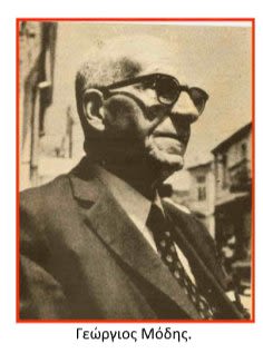 [4] Γεώργιος Μόδης (1887-1975), μακεδονομάχος, πολιτικός και συγγραφέας. Βουλευτής Φλωρίνης (Κόμμα Φιλελευθέρων 1923• Κόμμα Ενώσεως Φιλελευθέρων 1926• Κόμμα Φιλελευθέρων 1928• Δημοκρατικόν Σοσιαλιστικόν Κόμμα 1950• Κόμμα Φιλελευθέρων 1951, 1952)• Υπουργός Εσωτερικών (από 28-08-1950 έως 13-09-1950), Υφυπουργός Θρησκευμάτων & Εθνικής Παιδείας (από 01-02-1951 έως 04-07-1951) στις Κυβερνήσεις Σοφοκλέους Βενιζέλου• Γενικός Διοικητής: Ηπείρου (από 13-02-1931 έως 03-03-1932) και Μακεδονίας (από 15-11-1944 έως 07-03-1945)• τα βιώματα και τις αναμνήσεις του από τον Μακεδονικό Αγώνα κατέγραψε στα βιβλία του «Μακεδονικές Ιστορίες», «Αγώνες για τη Μακεδονία», κ.α.