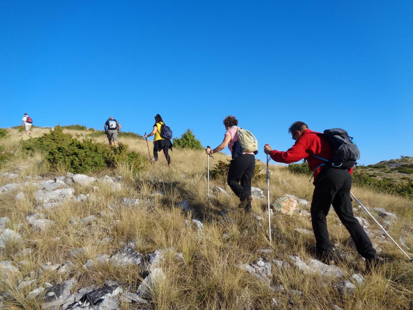Από εδώ θέα απεριόριστη, πίσω μας- όπως ορειβατούμε με πορεία την Αγία