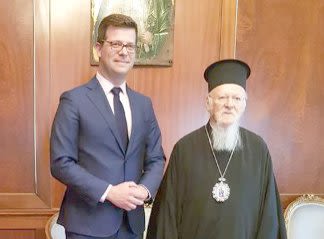 Ο Άγγελος Τόλκας έγινε δεκτός από την Α.Ε. Οικουμενικό Πατριάρχη Βαρθολομαίο με τον οποίον είχαν συζήτηση για θέματα της αρμοδιότητάς του για τα οποία ο Οικουμενικός Πατριάρχης έχει επιδείξει ιδιαίτερο έργο κι ευαισθησία.