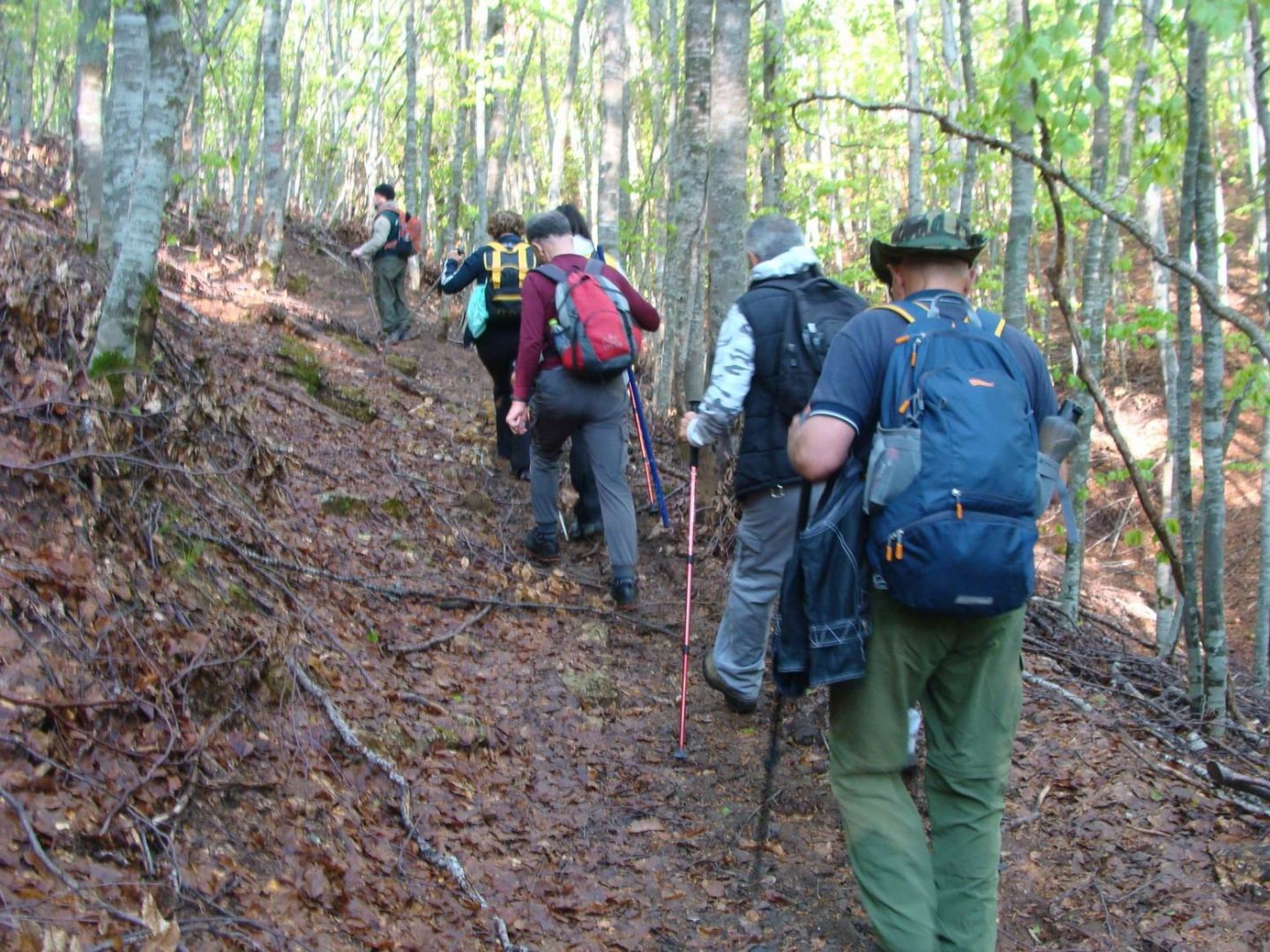 Πήραμε το μονοπάτι  ανηφορικό, σε πολλά σημεία  η  υγρασία μας δυσκολεύει, τώρα ορειβατούμε  σε πυκνό  δάσος από πανύψηλες οξιές.