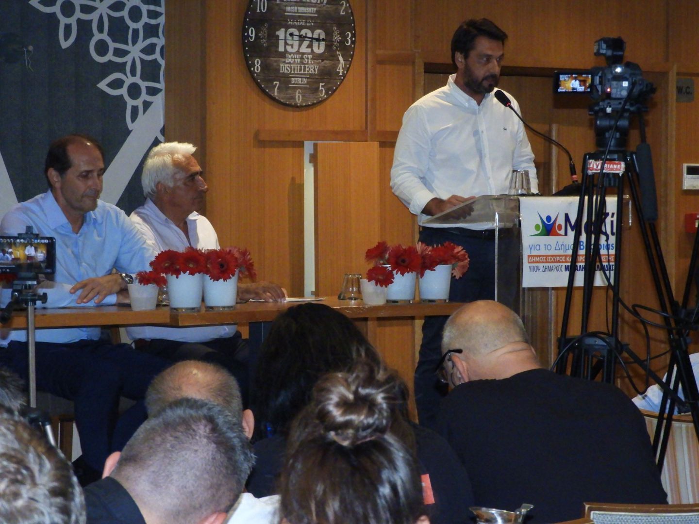 Στη συνέχει ο υποψήφιος δήμαρχος μίλησε στους παρισταμένους στην αίθουσα και αφού ευχαρίστησε συνεργάτες, συναγωνιστές και φίλους έδωσε ένα περίγραμμα της υποψηφιότητας και του προγράμματός του και κυρίως της κριτικής του προσέγγισης στην παρούσα δημοτική Αρχή, τονίζοντας μεταξύ άλλων: