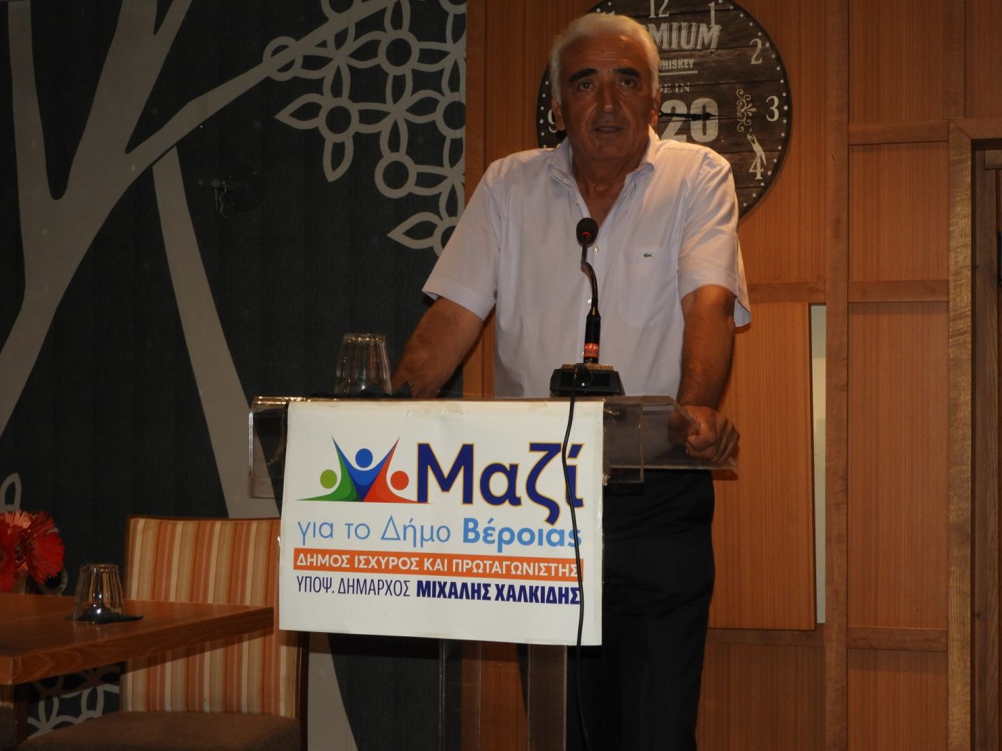 Την στήριξη, εμπράκτως, και των τριών βουλευτών, των πολιτευτών και των τοπικών Οργανώσεων της ΝΔ, στο ψηφοδέλτιό του για τον δήμο Βέροιας, ζήτησε ο υποψήφιος Δήμαρχος Μιχάλης Χαλκίδης, στην ανοιχτή εκδήλωση που διοργάνωσε το βράδυ της Δευτέρας 24 Ιουλίου στην «Ελιά», όπου παρουσίασε 106 υποψήφιους του συνδυασμού του «Μαζί για τον Δήμο Βέροιας».