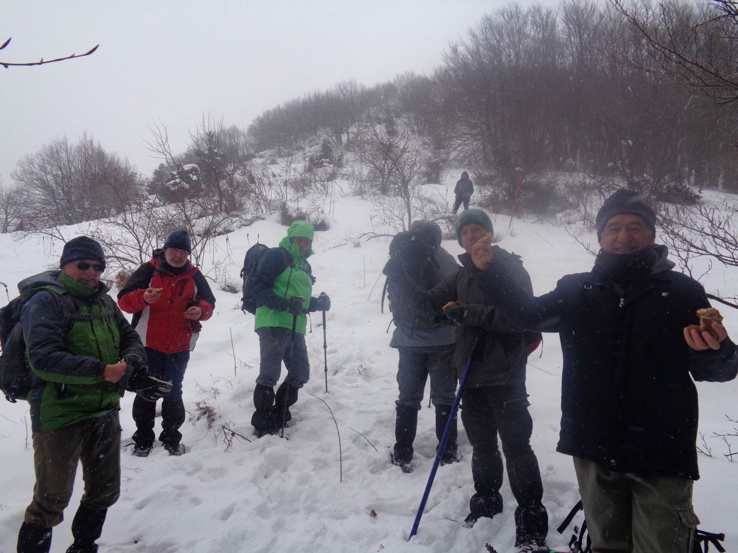 Με την μελωδία κάποιων πουλιών και την ελαφρά χιονόπτωση να μας ακολουθεί πήραμε τον δρόμο της επιστροφής . Ανάμεσα σε βουνίσιες κερασιές , κορομηλιές πουρνάρια και ιτιές συνεχίζουμε την κατάβαση .