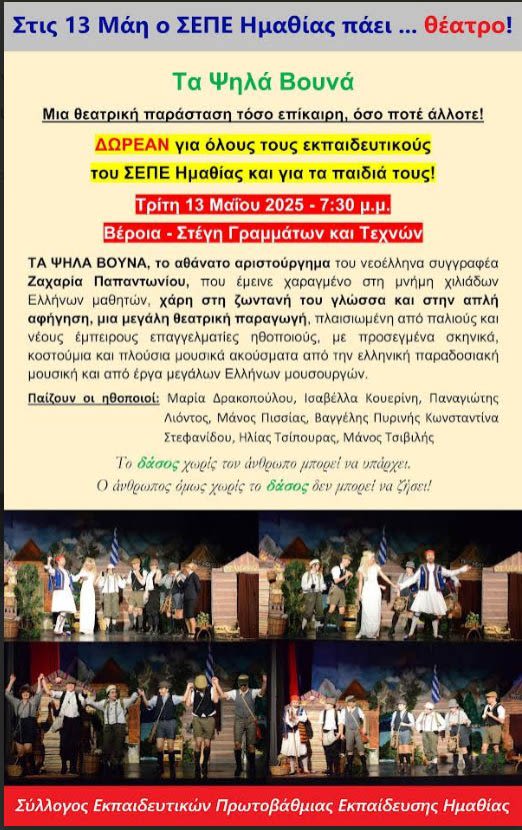 Εκπαιδευτικών Πρωτοβάθμιας Εκπαίδευσης Ημαθίας θα πραγματοποιηθεί την Τρίτη 13