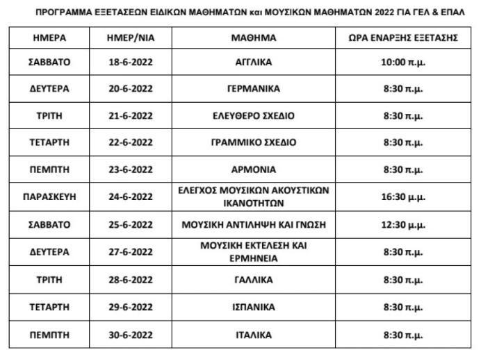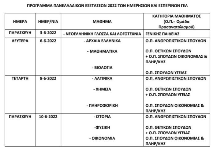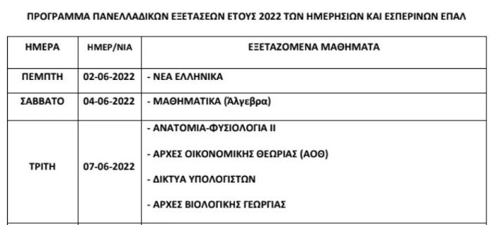 – Έναρξη πανελλαδικών εξετάσεων ημερήσιων και εσπερινών γενικών λυκείων: 3 Ιουνίου 2022