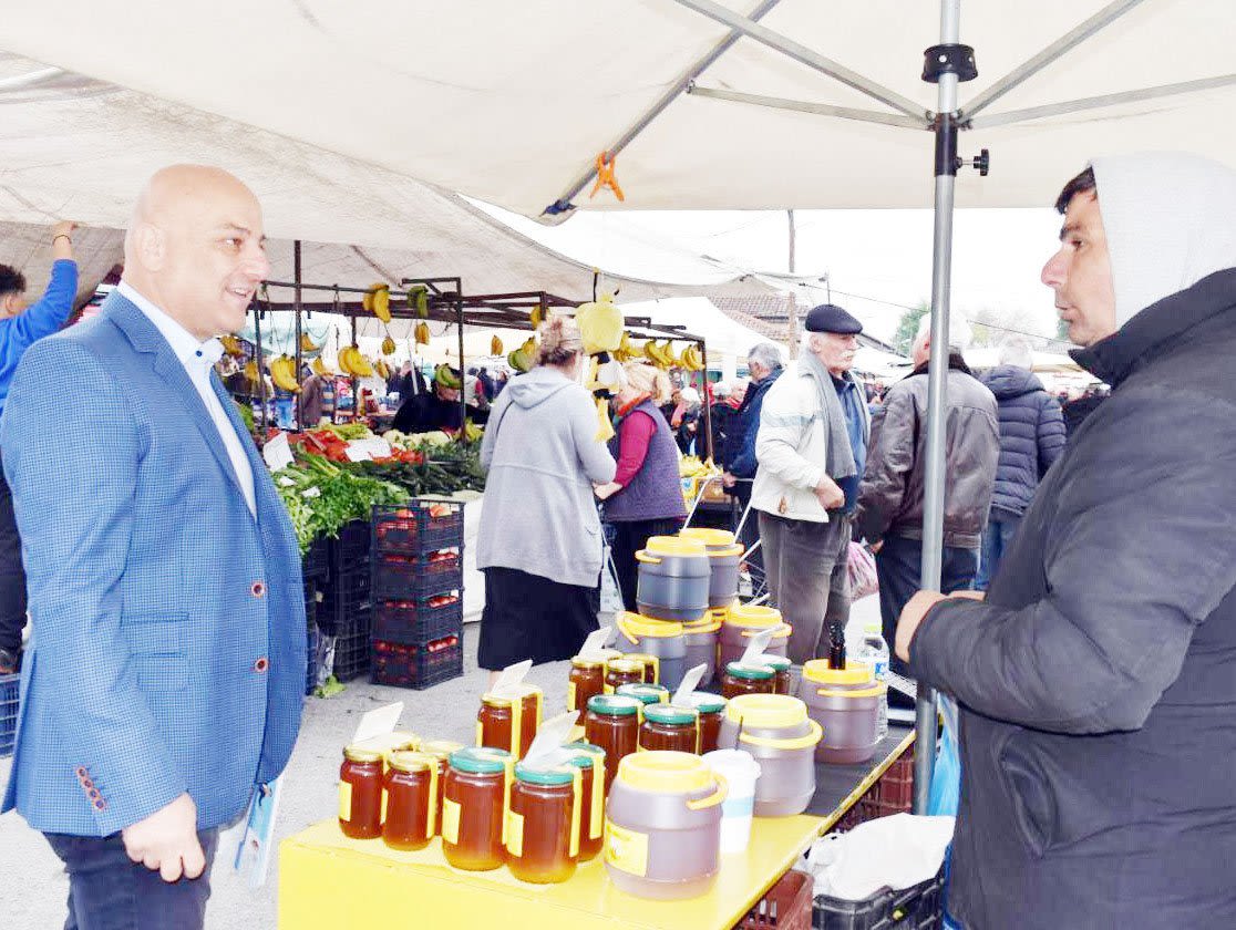 Στην συνέχεια επισκέφτηκε τον χώρο της υπαίθριας λαϊκής αγοράς, όπου συζήτησε με τους μικροπωλητές και τους πολίτες που έκαναν τα ψώνια τους, έχοντας την ευκαιρία να ακούσει τα προβλήματα που τους απασχολούν, με πρώτο στην λίστα την ακρίβεια και την δυσκολία τους να τα βγάλουν πέρα.