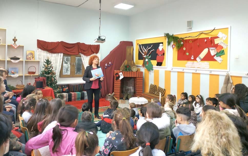 Το πέρασμά της, αυτή τη φορά, οφειλόταν στον «Κροκόδειλο που έτρωγε το χιόνι», ένα πρωτότυπο χριστουγεννιάτικο παραμύθι των ….. που είχε την καλοσύνη και τη διάθεση να μοιραστεί μαζί με τους μαθητές του Δημοτικού Σχολείου Κουλούρας.