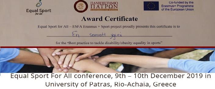 H υποψηφιότητα του “Εν Σώματι Υγιει” συγκέντρωσε την υψηλότερη βαθμολογία μεταξύ των υποψηφίων προς βράβευση στην κατηγορία “Best Practice to tackle Disability Equality in Sports” (Βέλτιστες Πρακτικές για την Ισότιμη Προώθηση των ΑμεΑ στον Αθλητισμό), έπειτα από “τυφλή” κρίση πέντε διαφορετικών κριτών από τα Πανεπιστήμια* που συμμετείχαν στο ESFA Erasmus+Sport Project. Τα κριτήρια που λήφθηκαν υπόψην ήταν τα εξής: