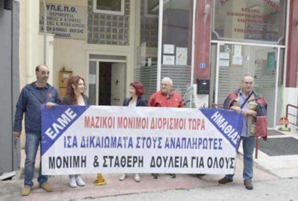 Παράσταση διαμαρτυρίας στη Διεύθυνση Δευτεροβάθμιας Εκπαίδευσης Ημαθίας, ενάντια στο νόμο με τίτλο «Εθνική Αρχή Ανώτατης Εκπαίδευσης (ΕΘ.Α.Α.Ε.), Ειδικοί Λογαριασμοί Κονδυλίων Έρευνας Ανώτατων Εκπαιδευτικών Ιδρυμάτων, Ερευνητικών και Τεχνολογικών Φορέων και άλλες διατάξεις» έκανε την Πέμπτη 23 Ιανουαρίου, η ΕΛΜΕ Ημαθίας, στα Γραφεία της Διεύθυνσης Δευτεροβάθμιας Εκπαίδευσης, στη Βέροια.