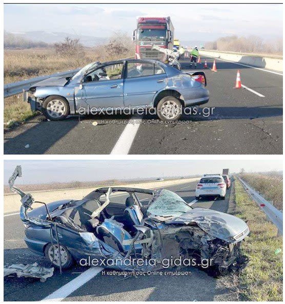 Ο 55χρονος οδηγός μεταφέρθηκε με ασθενοφόρο του ΕΚΑΒ στο Νοσοκομείο Βέροιας, ενώ προανάκριση για τα αίτια διενεργεί η Τροχαία Βέροιας.