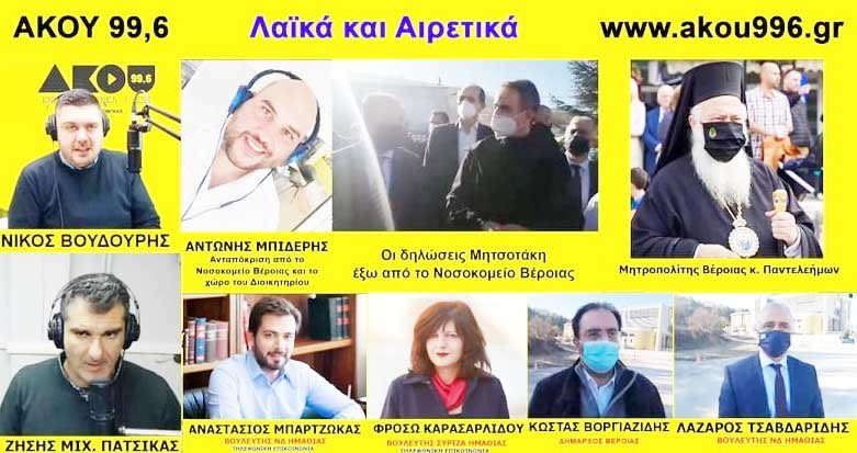 Ο δήμαρχος Βέροιας Κ. Βοργιαζίδης και ο βουλευτής ΝΔ Ημαθίας Λάζαρος Τσαβδαρίδης ζωντανά μέσω skype από τον χώρο δίπλα από το δικαστικό μέγαρο όπου θα ανεγερθεί το διοικητήριο και επισκέφθηκαν μαζί με τον πρωθυπουργό. Είχε προηγηθεί η τηλεφωνική επικοινωνία με την βουλευτή ΣΥΡΙΖΑ Ημαθίας Φρόσω Καρασαρλίδου, ενώ την παρουσία των βουλευτών έκλεισε με τηλεφωνική παρέμβαση ο Τάσος Μπαρτζώκας. Με την παρουσία του τίμησε την εκπομπή για μια ακόμη φορά δίνοντας τηλεφωνικά το μήνυμα και τις ευχές του σε όλο τον κόσμο ο Μητροπολίτης Βεροίας κ. Παντελεήμων.