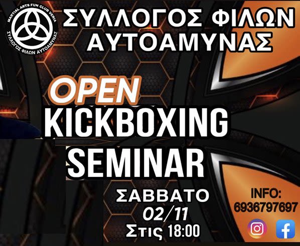 Σεμινάριο kickboxing θα διεξαχθεί 2 ΝΟΕΜΒΡΙΟΥ Σάββατο στις 18:00 στον σύλλογο μας από τον δάσκαλο ΠΙΣΤΙΚΟ ΓΡΗΓΟΡΗ