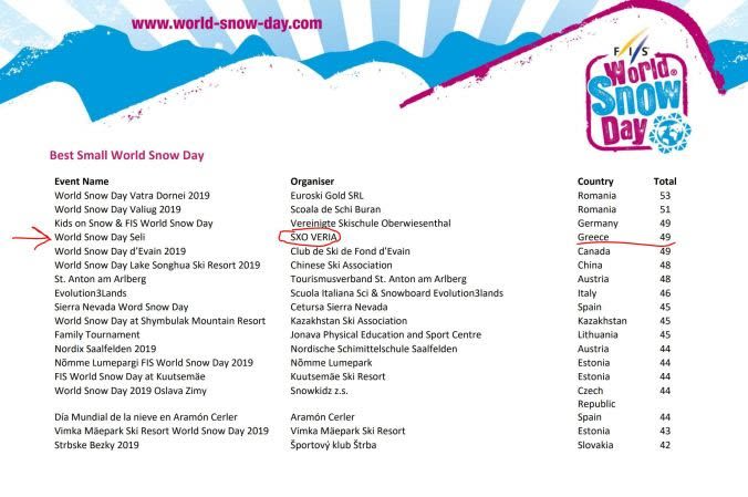 Σε συνέχεια των προηγούμενων ετών και της αναγνώρισης από την Παγκόσμια Ομοσπονδία των προσπαθειών του ΣΧΟΒ στην εξάπλωση των χειμερινών αθλημάτων, ήρθε μια ακόμα μεγαλύτερη επιτυχία !!!