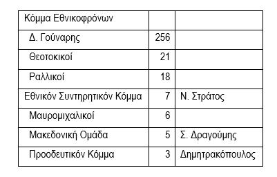 Η διαφορά που προκύπτει μεταξύ των 316 εκλεγέντων και των (221 + 96 =) 317 ορκισθέντων οφείλεται στο ότι στην δεύτερη φάση της ορκωμοσίας συμμετείχε και ένας εκ των Βορειοηπειρωτών Βουλευτών (Πέτρος Ζάππας, Αργυροκάστρου).