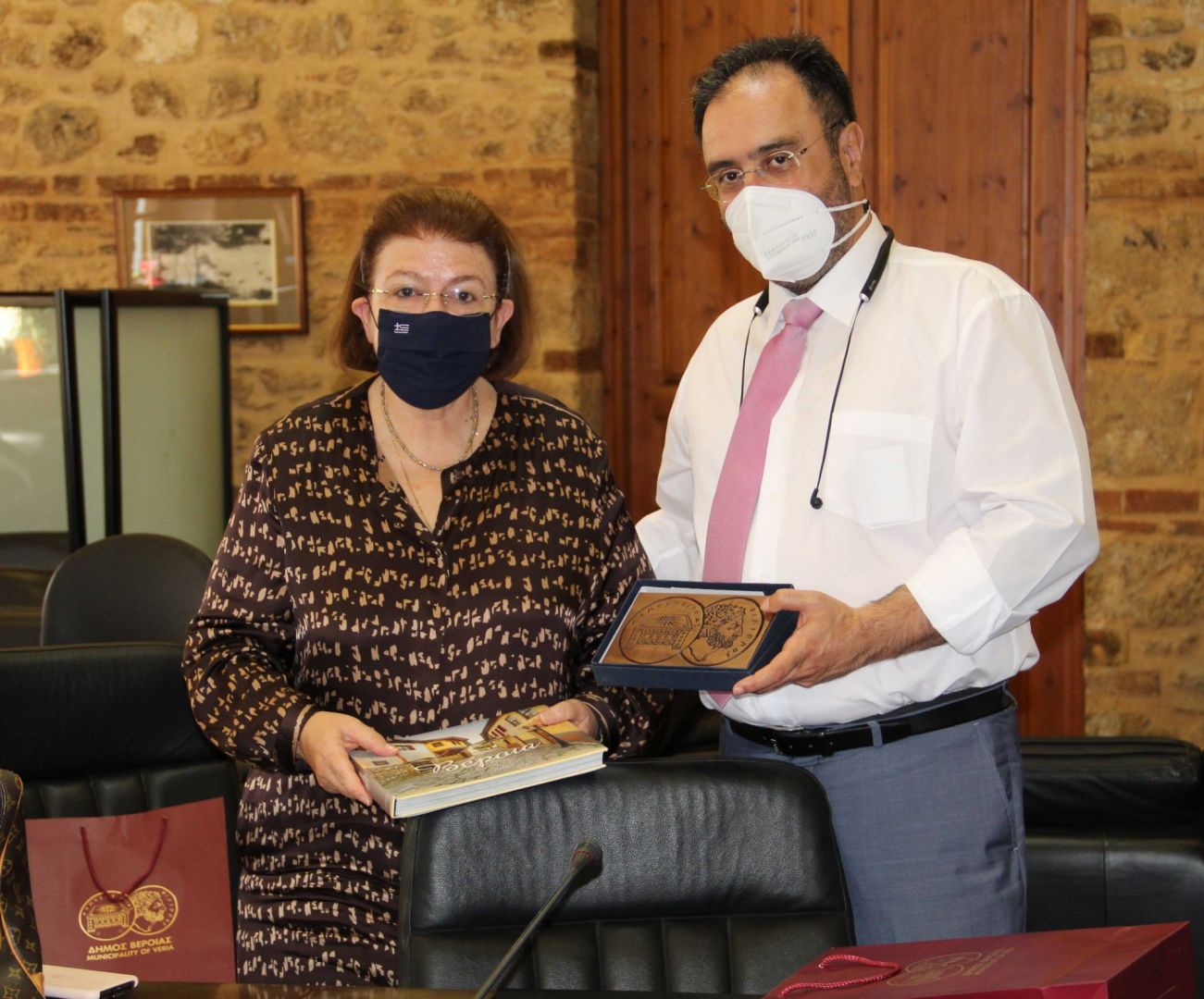 Στο τέλος της σύσκεψης ο Δήμαρχος Βέροιας δώρισε στην Υπουργό