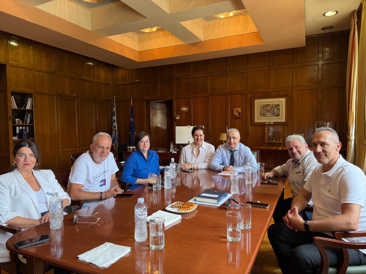 Ο Υφυπουργός Ανάπτυξης κ. Λάζαρος Τσαβδαρίδης δέχθηκε σήμερα στο γραφείο του στο Υπουργείο τους εκπροσώπους της ΔΑΚΕ Υγειονομικού του Γενικού Νοσοκομείου Βέροιας, οι οποίοι είναι και Αντιπρόσωποι στην Πανελλήνια Ομοσπονδία Εργαζομένων Δημόσιων Νοσοκομείων (ΠΟΕΔΗΝ).