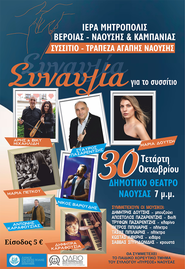 Καμπανίας και του Δήμου Ηρωικής Πόλεως Ναούσης διοργανώνει Συναυλία Αλληλεγγύης