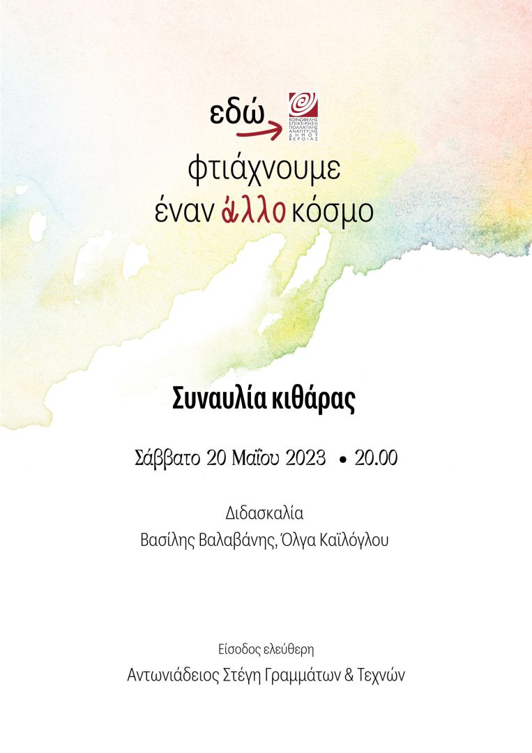 Την Πέμπτη 30 Απριλίου 2026, ώρα 8.00 μ.μ., στο φουαγιέ της Αντωνιάδειου Στέγης Γραμμάτων και Τεχνών στη Βέροια (Α. Αντωνιάδη