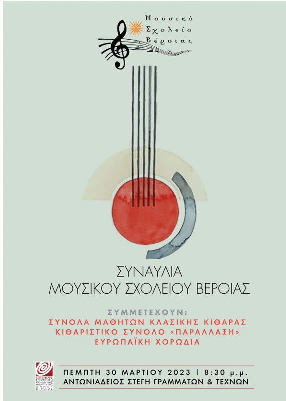 Σας προσκαλούμε στην συναυλία του Μουσικού Σχολείου Βέροιας η οποία θα πραγματοποιηθεί στην Αντωνιάδεια Στέγη Γραμμάτων & Τεχνών,