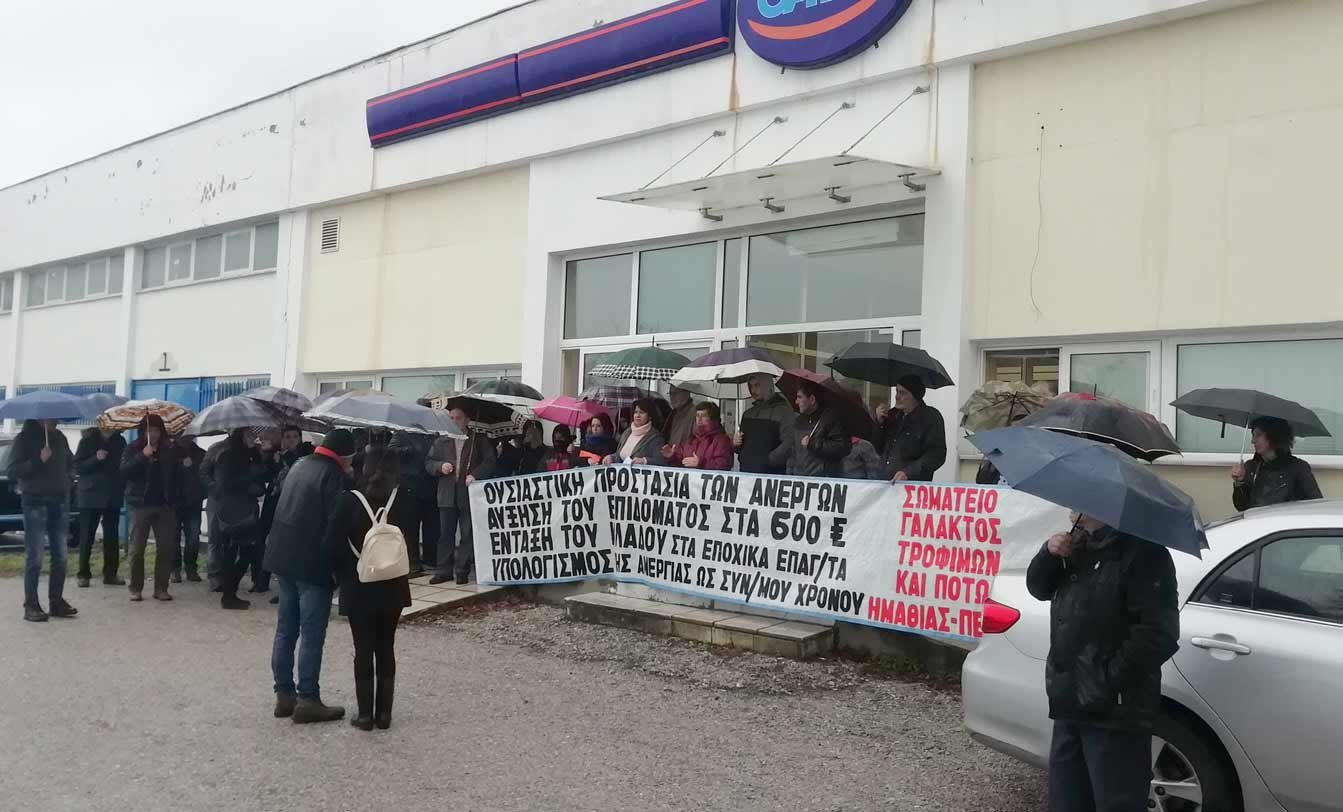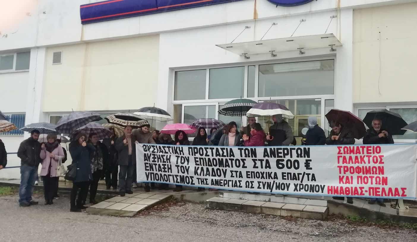 Κινητοποίηση στον ΟΑΕΔ Βέροιας ,παρά την κακοκαιρία , πραγματοποίησε χθες Τετάρτη το Συνδικάτο Γάλακτος , Τροφίμων και Ποτών Ημαθίας-Πέλλας για τα προβλήματα που αντιμετωπίζουν οι εποχικοί εργαζόμενοι στον Κλάδο και ιδιαίτερα όσοι εργάζονται στα Διαλογητήρια και στα Κονσερβοποιεία της περιοχής.