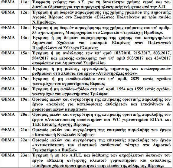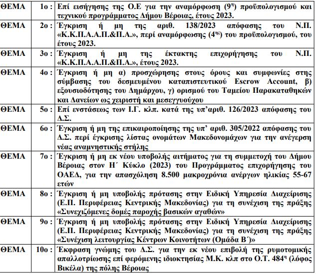 συνεδρίαση, που θα γίνει στις 21-8-2023 ημέρα Δευτέρα και ώρα 18:00, με θέματα