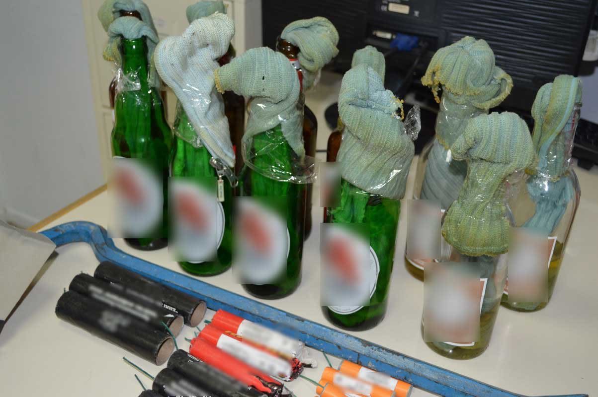 αυτοσχέδιες βόμβες μολότοφ, κροτίδες και λοστό