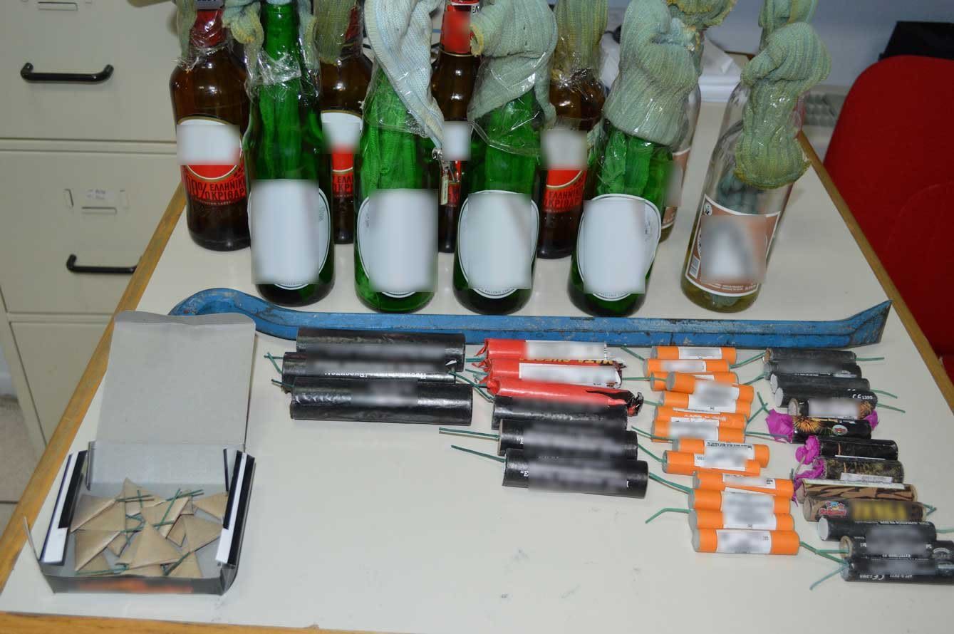 μηχανισμοί (βόμβες μολότοφ), (50) κροτίδες και λοστός.