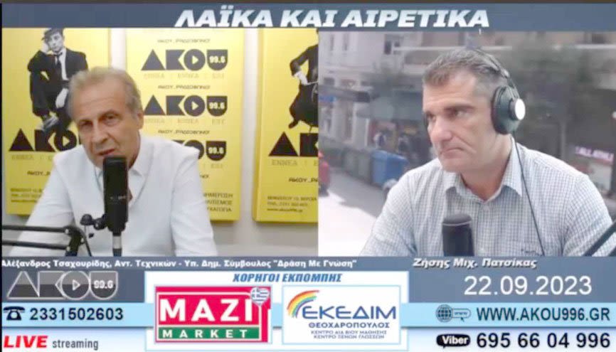Συνέντευξη του Αλέξη Τσαχουρίδη στον ΑΚΟΥ 99.6 – «Αμοιβαία εμπιστοσύνη και στενή συνεργασία με τον δήμαρχο τα 4 χρόνια»