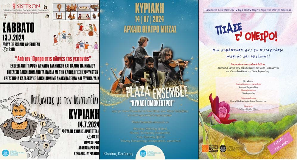 Πολιτιστικό Κέντρο της Σχολής Αριστοτέλους και στο Αρχαίο Θέατρο Μίεζας με