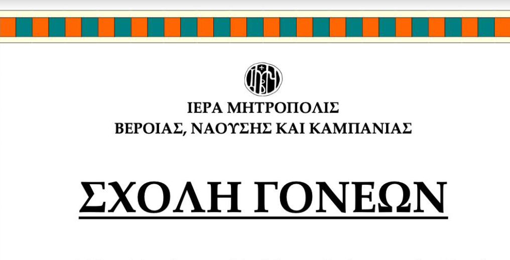 Τήν Τετάρτη 29 Νοεμβρίου στίς 7 τό ἀπόγευμα στό Πνευματικό Κέντρο τῆς Ἱερᾶς μας Μητροπόλεως (Βενιζέλου 29, 1ος ὄροφος) ὁμιλήτρια στή Σχολή Γονέων θά εἶναι ἡ κ. Λουκία Χατζηβασιλείου, λογοθεραπεύτρια – εἰδική παιδαγωγός, μέ θέμα: «Εἰδική προσέγγιση τῶν προβλημάτων συμπεριφορᾶς τῶν παιδιῶν. Τό διαδίκτυο στή ζωή τῶν ἐφήβων».