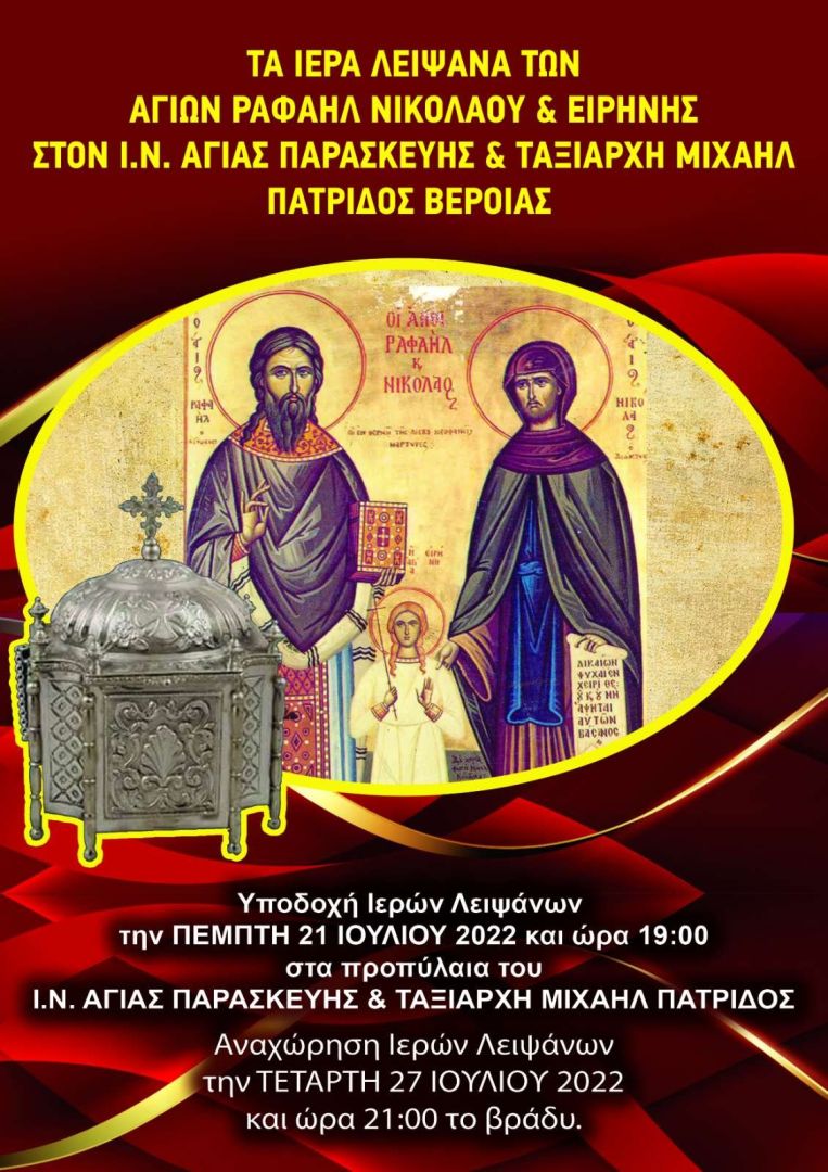 Βέροιας θα πραγματοποιηθεί η υποδοχή των Ιερών Λειψάνων των Αγίων Νεοφανών