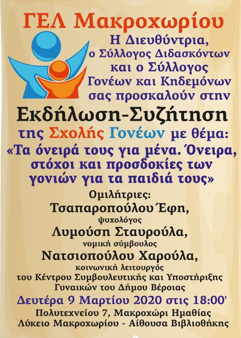 του ΓΕΛ Μακροχωρίου πραγματοποιούν Εκδήλωση – Συζήτηση με θέμα: «Τα όνειρα