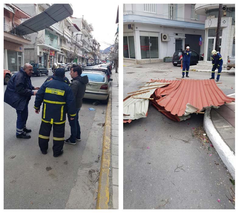 Στο σημείο έσπευσε η Πυροσβεστική, συνεργείο του δήμου(στα πλαίσια της πολιτικής προστασίας), οι οποίοι με γερανοφόρο όχημα, σκαπτικό και άντρες με αλυσοπρίονα, καθάρισαν και αποκατέστησαν το σημείο. Σε επικοινωνία με τον αρμόδιο αντιδήμαρχο Βασίλη Παπαδόπουλο, μας ανέφερε ότι υπήρξε πτώση δέντρου στην στροφή μετά τις «Φλαμουριές», στο ρεύμα ανόδου, όπου έπαθαν ζημιά καλώδια της ΔΕΗ και επενέβη συνεργείο το οποίο μέχρι το βράδυ, αποκατέστησε την ζημιά. Επίσης στην πλατεία Ωρολογίου, αποκολλήθηκε τμήμα του πολυκαρβουνικού στέγαστρου, το οποίο για ασφάλεια αφαιρέθηκε από συνεργείο του δήμου.