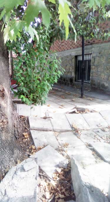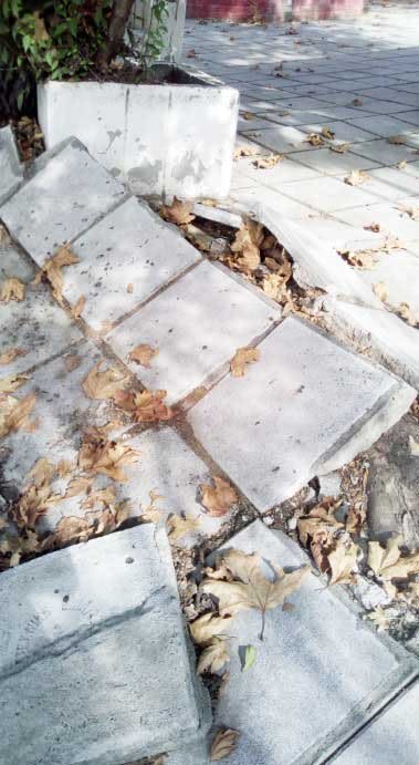 Ας μεριμνήσουν οι αρμόδιες υπηρεσίες για το κλάδεμα των δέντρων και την αποκατάσταση του πεζοδρομίου, για να μην γίνει μεγαλύτερη ζημιά.