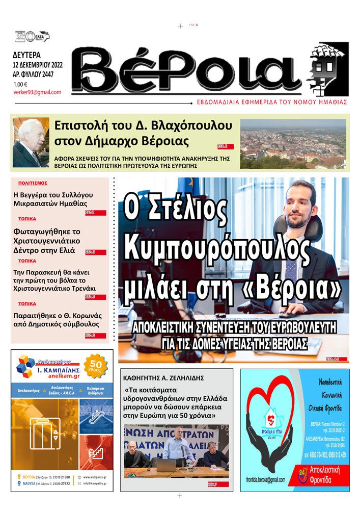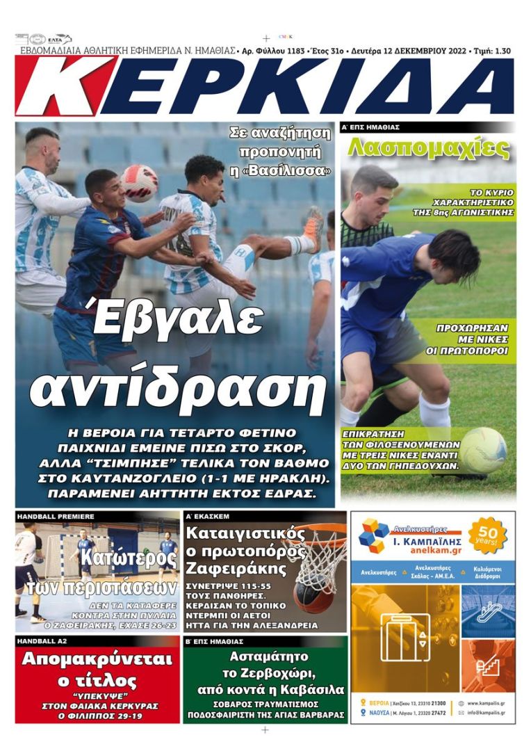 Τα πρωτοσέλιδα των εφημερίδων ΒΕΡΟΙΑ – ΚΕΡΚΙΔΑ (12/12/2022)