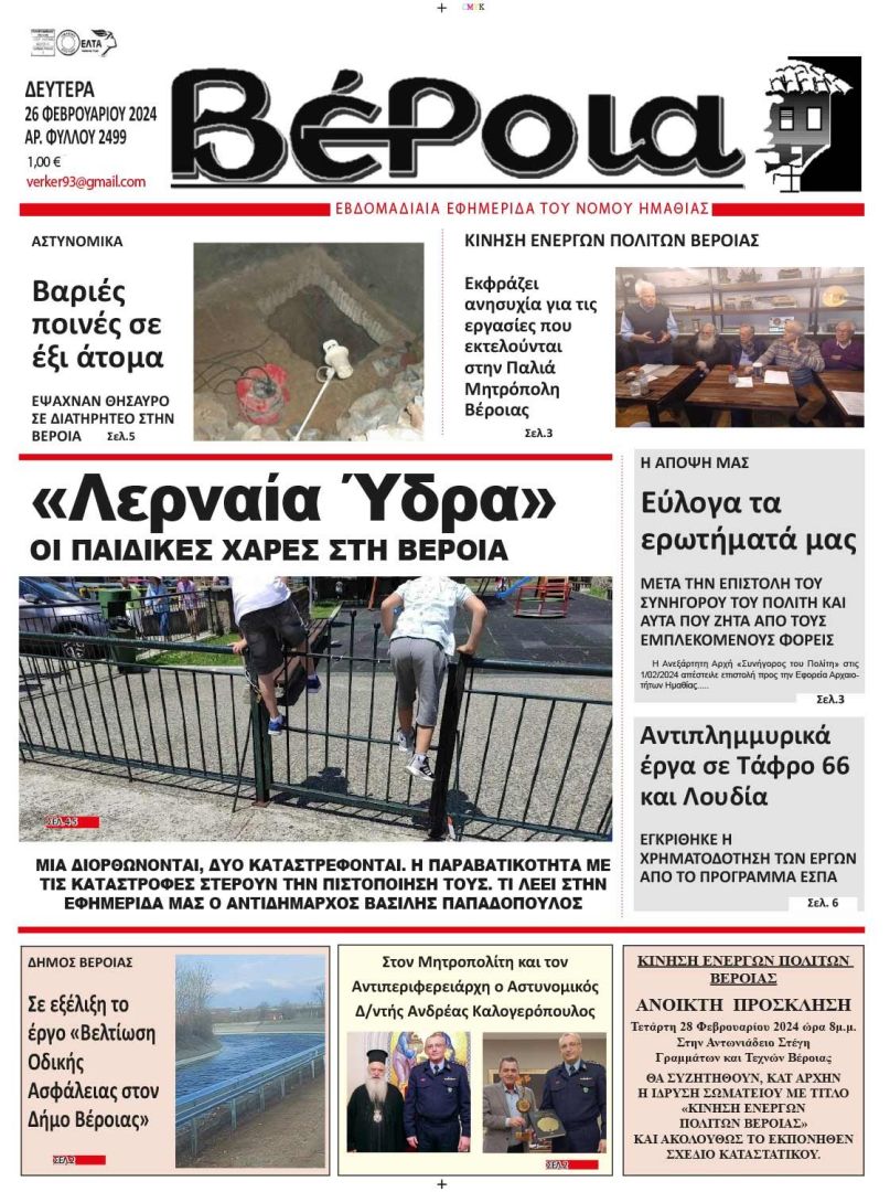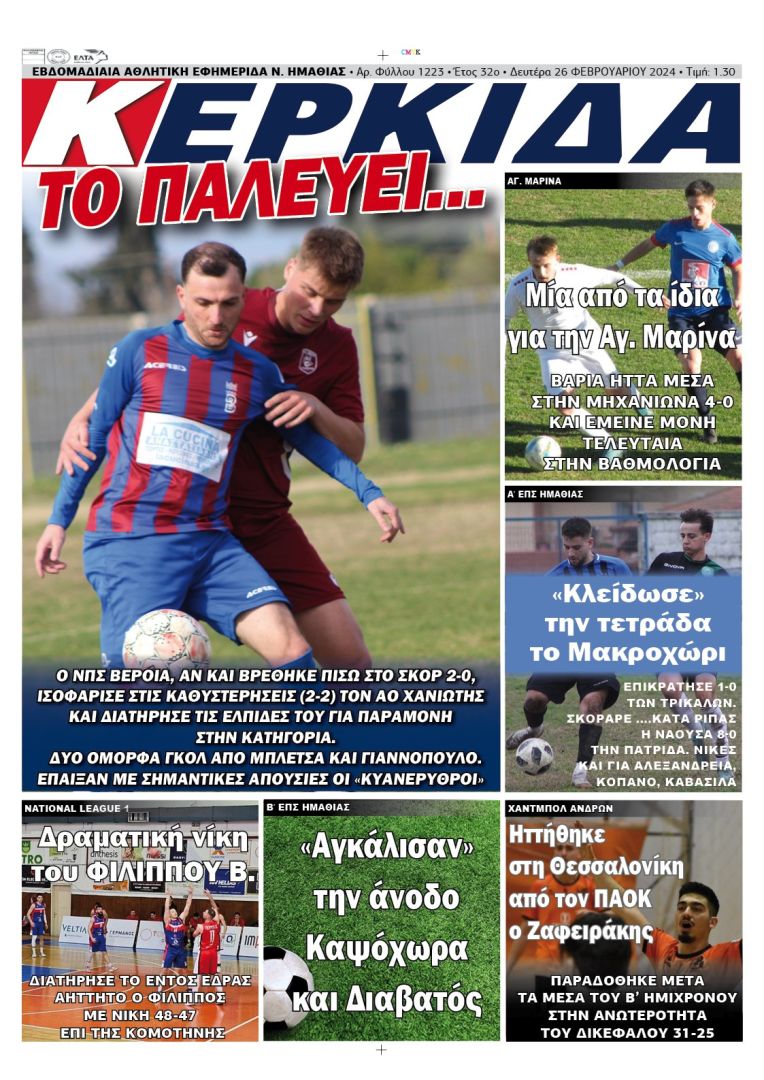 Τα πρωτοσέλιδα των εφημερίδων ΒΕΡΟΙΑ – ΚΕΡΚΙΔΑ (26/02/2024)