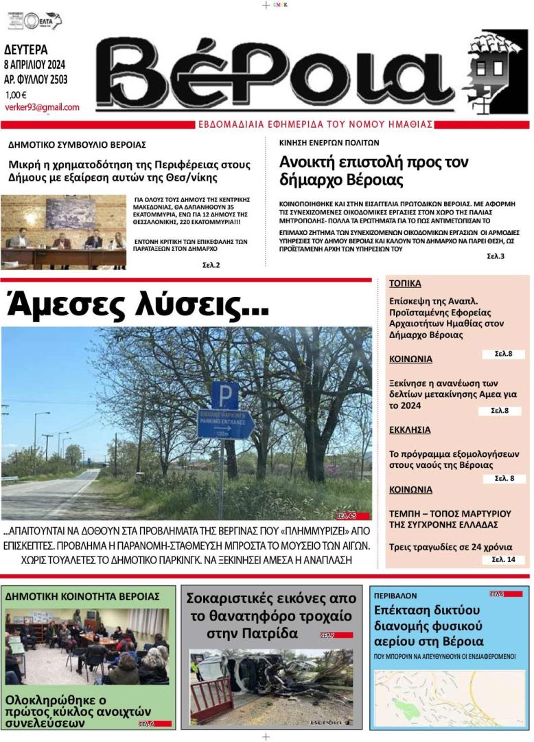 Τα πρωτοσέλιδα των εφημερίδων ΒΕΡΟΙΑ – ΚΕΡΚΙΔΑ (8/4/2024)