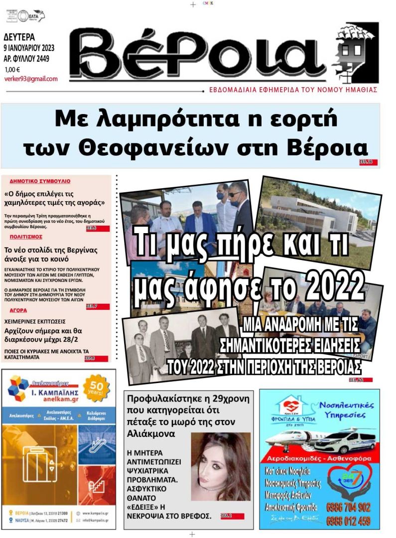 Τα πρωτοσέλιδα των εφημερίδων ΒΕΡΟΙΑ – ΚΕΡΚΙΔΑ (9/1/2023)