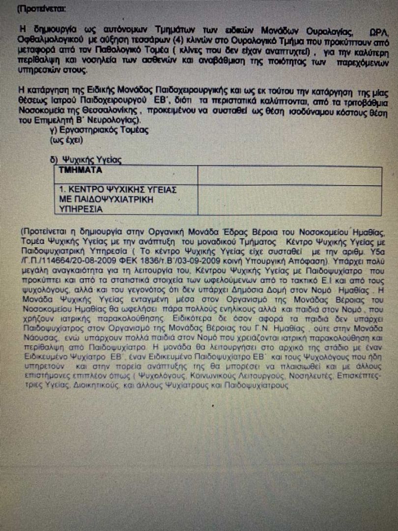 Άμεσα ο Βουλευτής προέβη, μέσω του Κοινοβουλευτικού Ελέγχου, σε διατύπωση πρότασης προς το Υπουργείο Υγείας για τη δημιουργία οργανικής θέσης Παιδοψυχιάτρου και σύσταση Ιατρο-Παιδαγωγικού τμήματος, το οποίο θα διευκόλυνε τους φροντιστές και τα άτομα με αναπηρίες που εντάσσονται στο φάσμα της ψυχικής υγείας, να πραγματοποιούν τις απαραίτητες εξετάσεις και την παρακολούθηση τους στον τόπο διαμονής τους. Εξάλλου, τα ίδια τα στατιστικά στοιχεία από το ΚΕΣΥ επεσήμαναν τόσο τον αυξημένο αριθμό παιδιών-ατόμων με αναπτυξιακές διαταραχές, όσο και την έλλειψη ανάλογης δομής στην Ημαθία.